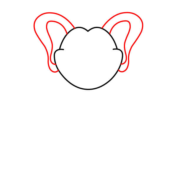Nakreslete velké sloní uši. Po obou stranách hlavy načrtněte dvě nadměrně velké, složitější tvary uší a přidejte vnitřní čáry pro jejich zvýraznění.