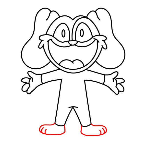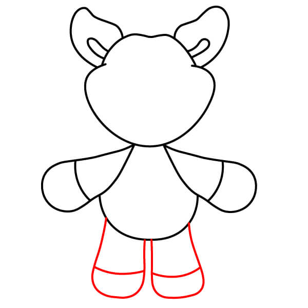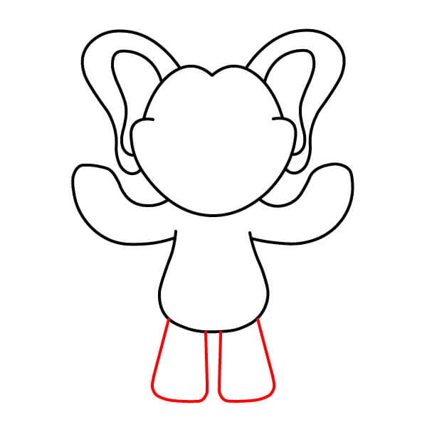 Nakreslete chodidla. Na spodní část nohou přidejte dva zaoblené tvary pro chodidla a malé zakřivené čárky naznačující prsty.