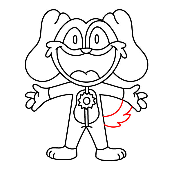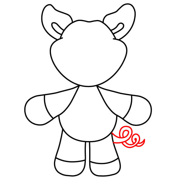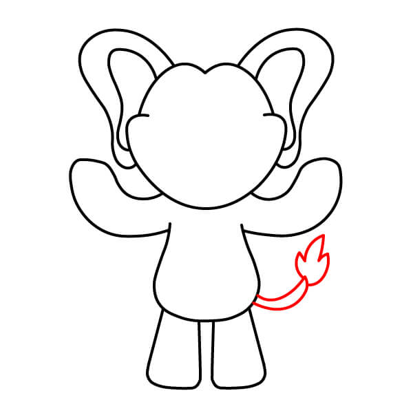 Nakreslete malý ocas na boku těla. Vypadá jako jednoduchý, zakřivený tvar písmene „B“ nebo přeložený oblouk.