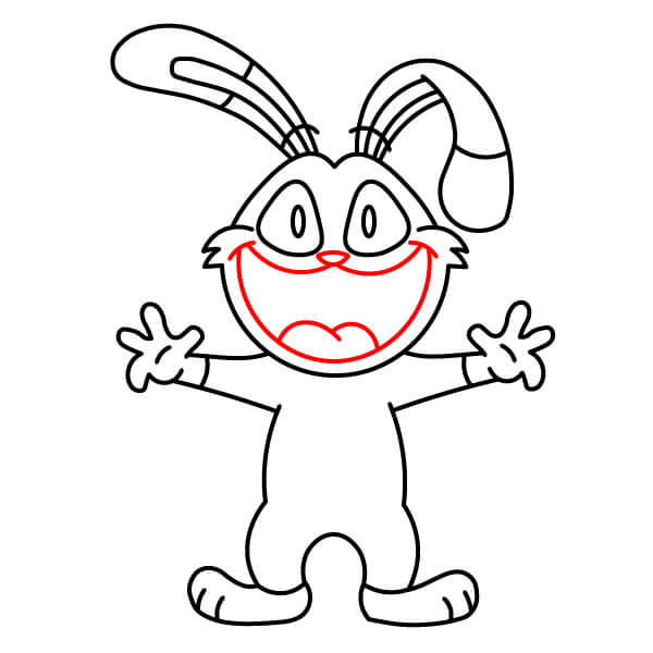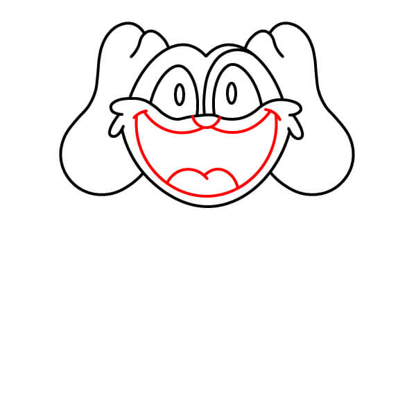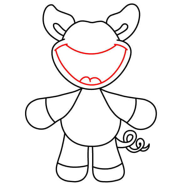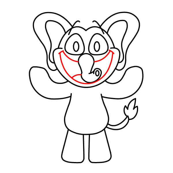 Nakreslete ústa a úsměv. Přidejte velmi široký, otevřený úsměv, který spojuje obě strany obličeje a vede pod chobotem.