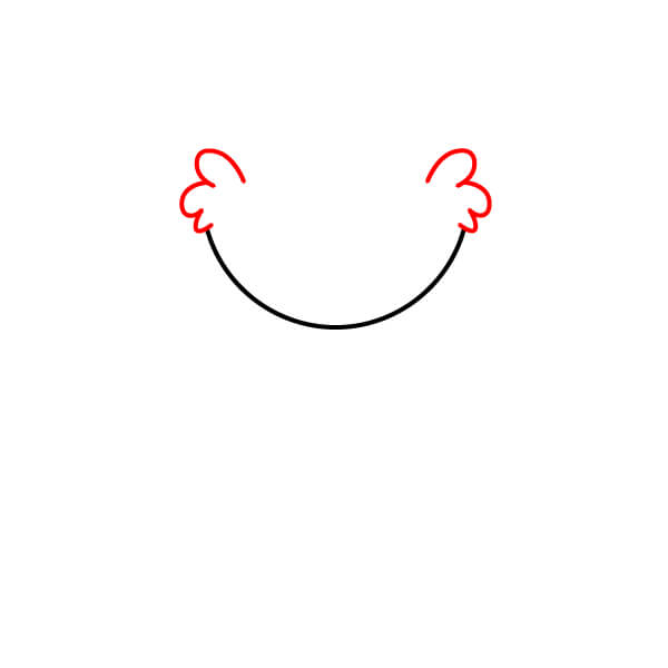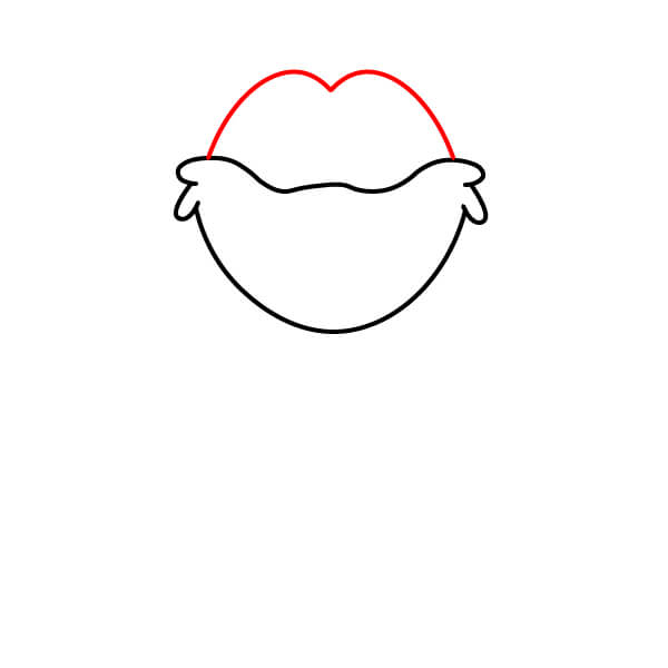 Začněte nakreslením spodní části obličeje a chlupatých tváří. Nakreslete velkou čáru zakřivenou směrem nahoru a na obou koncích přidejte malé chomáčky srsti.