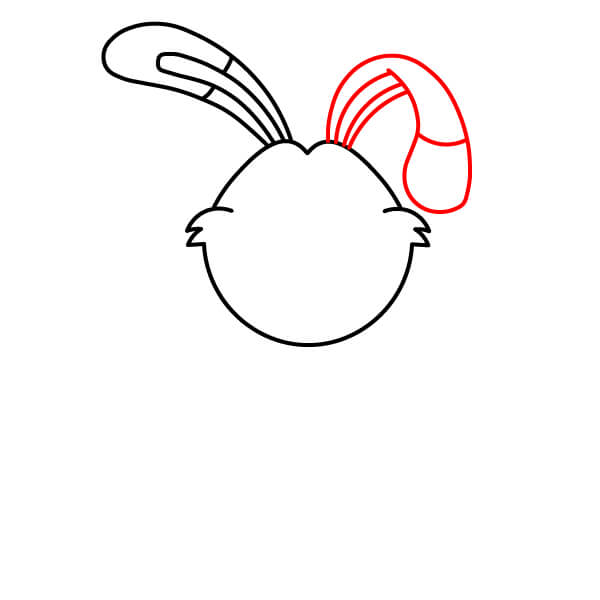Nakreslete druhé ucho. Na druhé straně načrtněte druhé dlouhé ucho. Toto ucho je nahoře ohnuté nebo svěšené, takže má zakřivený tvar. Přidejte také vnitřní čáry.