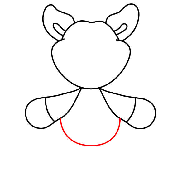 Nakreslete tělo. Pod pažemi načrtněte velký, zaoblený tvar písmene „U“, který dokončí hlavní obrys těla.
