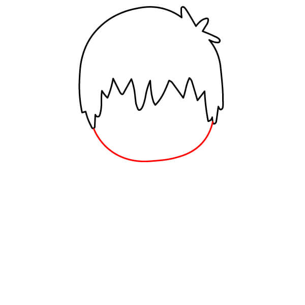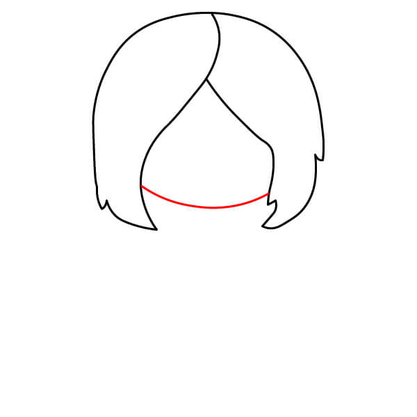 Nakreslete hladkou křivku pod ofinu, která vytvoří spodní část hlavy postavy.