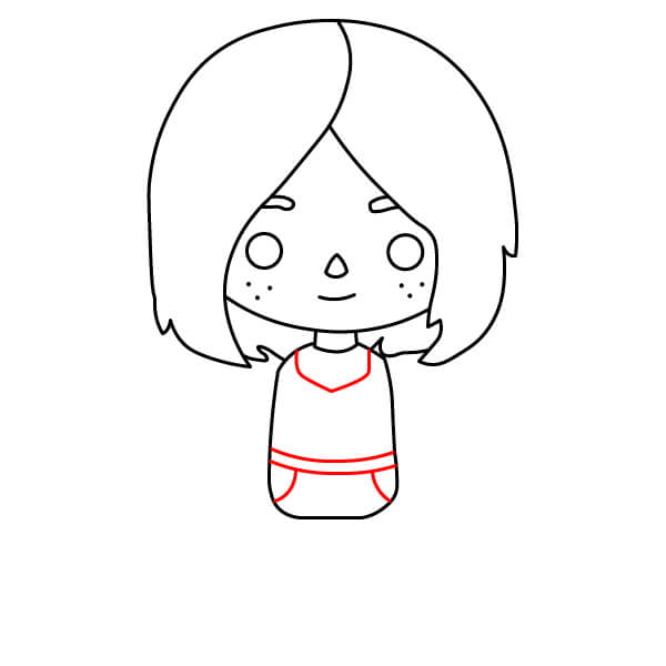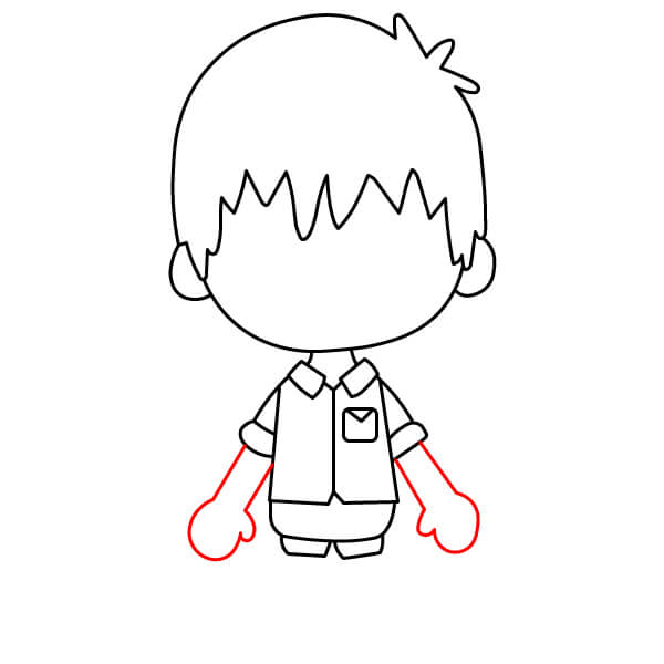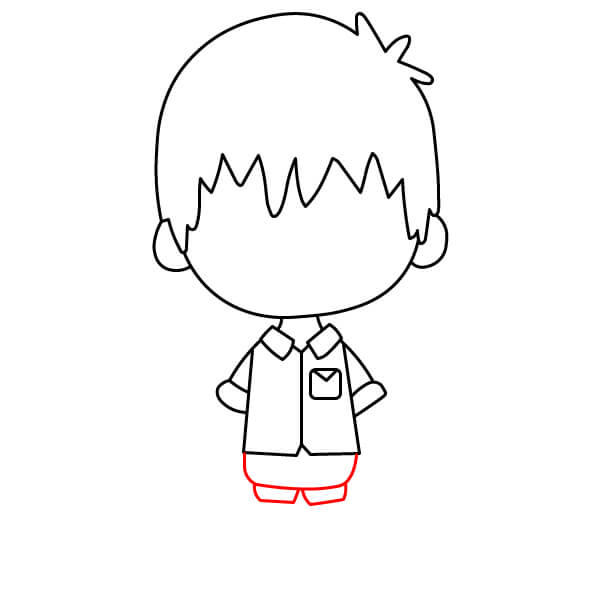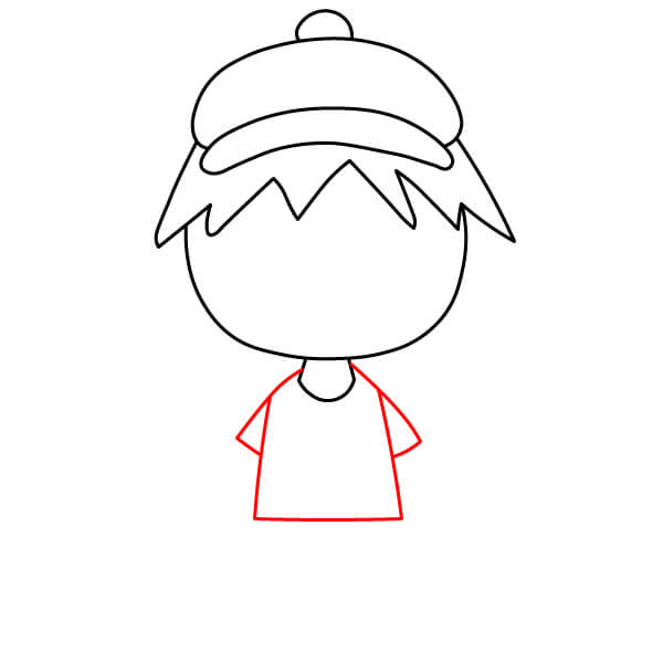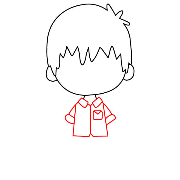 Pod košili nakreslete krátký obdélník nebo čtverec pro kalhoty.