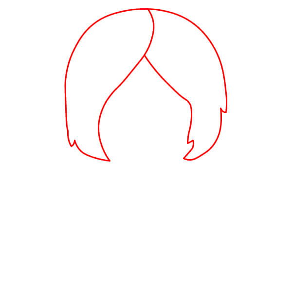 Nakreslete velkou čáru pro hlavu a vlasy. Přidejte jasnou dělicí čáru uprostřed, přičemž vlasy budou padat po obou stranách obličeje v měkké křivce.