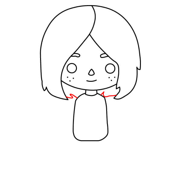 Uvnitř kapuce nakreslete vlasy postavy. Jedná se o jednoduchý tvar s několika vlnitými čarami, které vytvoří ofinu zakrývající obličej.