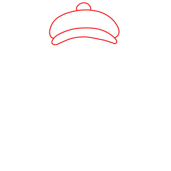 Začněte kreslením klobouku. Vytvořte kruh pro horní část klobouku s křivkou pod ním, která vytvoří okraj. Přidejte malý kruh nahoře.