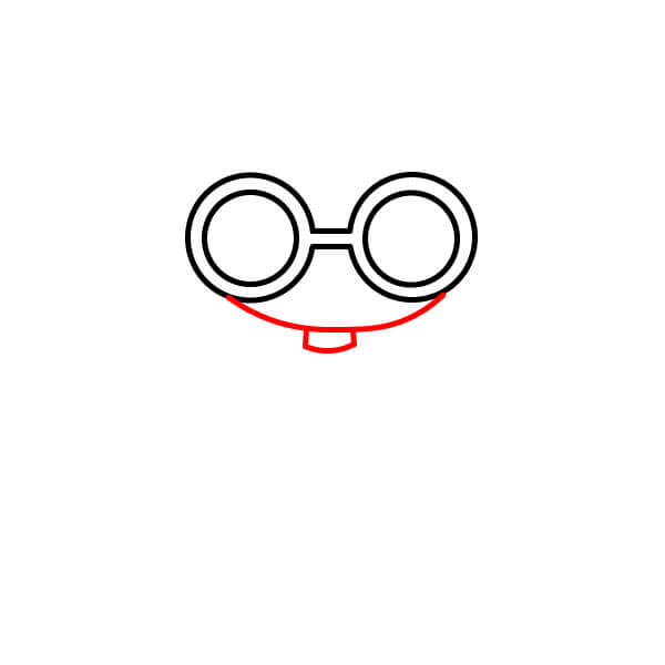 Pod obroučky brýlí nakreslete křivku pro obličej. Pod ní nakreslete malou křivku ve tvaru U pro krk.
