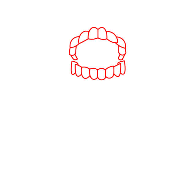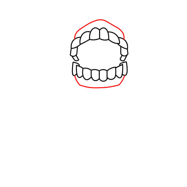 Nakreslete červenou křivku kolem zubů, abyste dokončili tvar úst/hlavy. Tato křivka představuje dásně nebo okolní strukturu.
