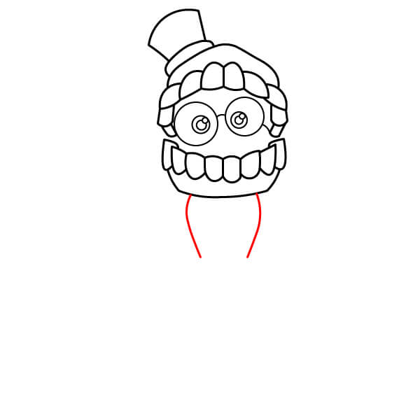 Nakreslete velký ovál uvnitř klobouku pro Pomniho hlavu. Přidejte boční klopy klobouku (vypadající jako dva copy), které orámují obličej. Také nakreslete dva malé přední zuby uprostřed horní části hlavy.