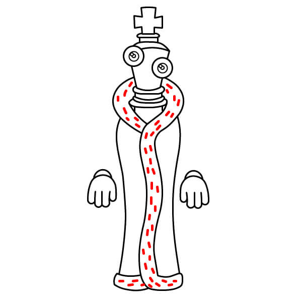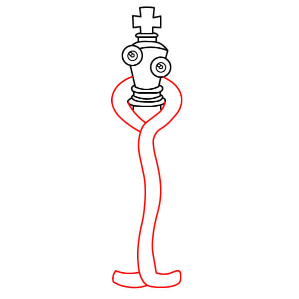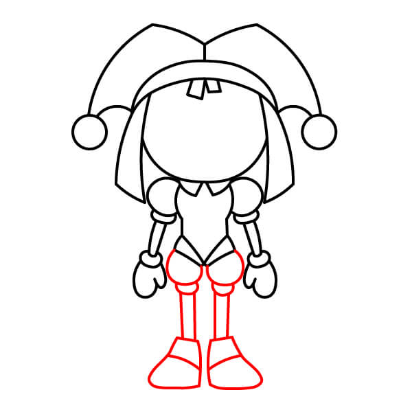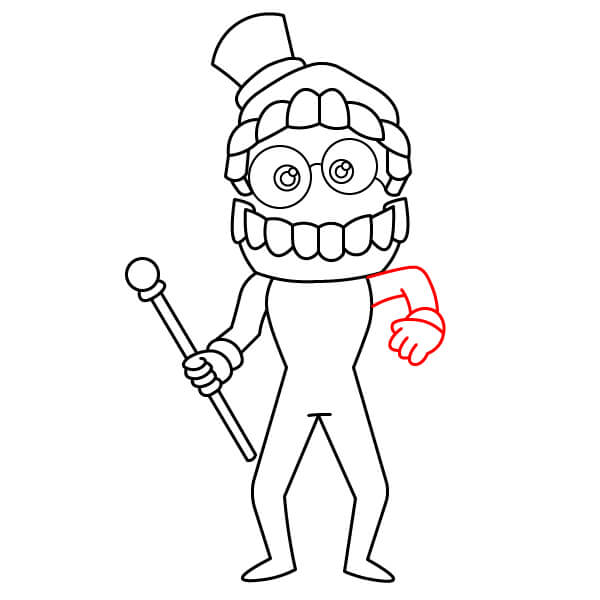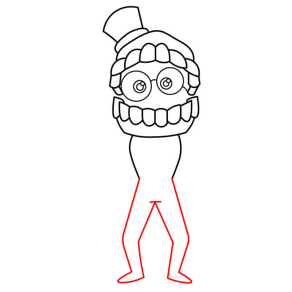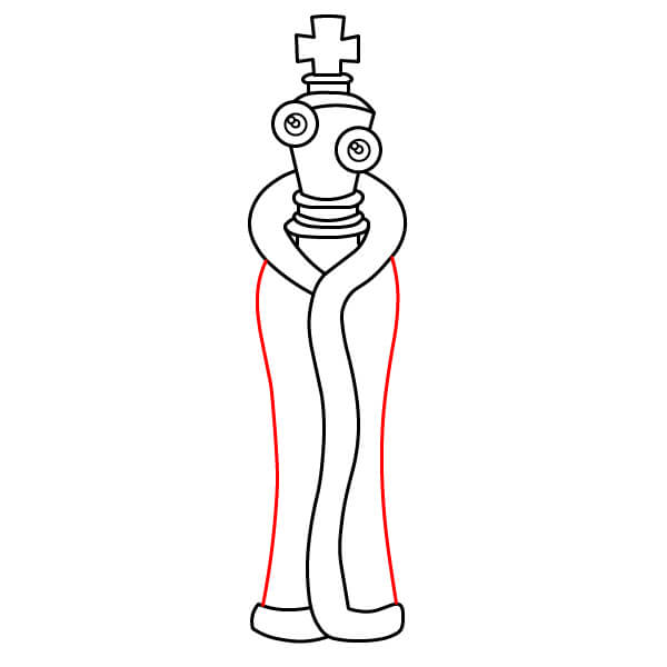 Nakreslete pravou nohu (nalevo od diváka). Tato noha je jednodušší: rovná, tenká noha sahající dolů a končící velkou botou v kresleném stylu s manžetou na rukávu.