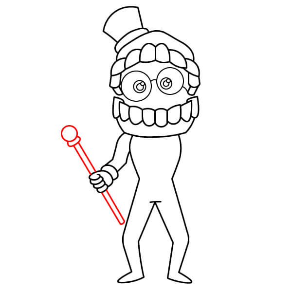 Nakreslete dlouhou, rovnou hůl drženou v pravé ruce. Na konci by měla mít malou kulatou kouli.
