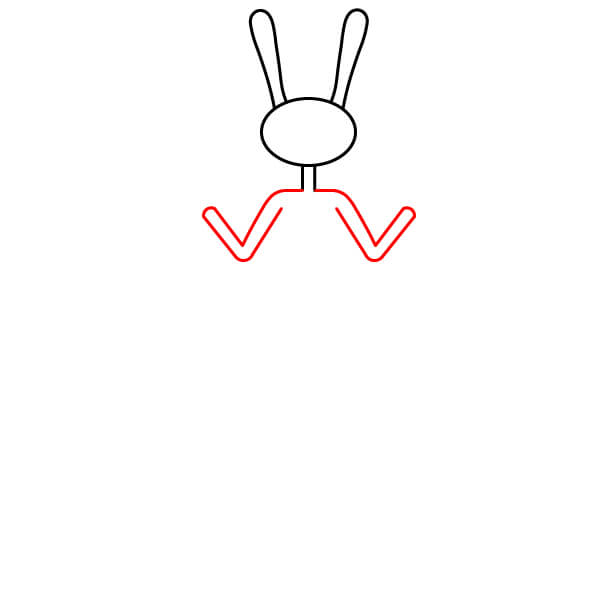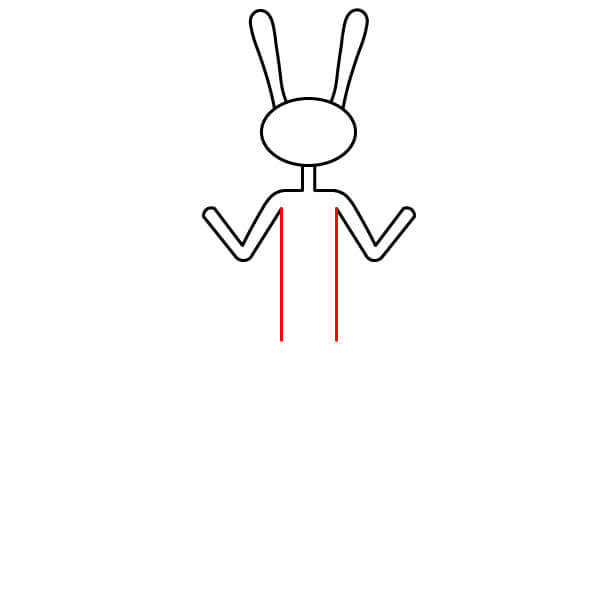 Nakreslete dvě dlouhé, vzhůru směřující králičí uši z horní části oválu hlavy. Měly by být rovnoběžné a nahoře mírně zakřivené do tvaru U.
