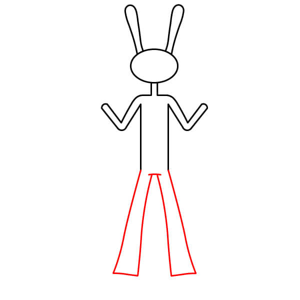 Nakreslete dvě dlouhé, rovnoběžné svislé čáry sahající dolů od paží ve tvaru V. Tím vytvoříte hlavní trup jeho dlouhého, štíhlého těla.