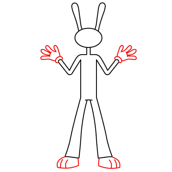 Nakreslete dvě ruce natahující se z paží. Měly by být velké, roztažené a v rukavicích (znázorněno obrysem zápěstí). Dole nakreslete dvě velké, kulaté chodidla a přidejte čáru blízko horní části chodidel, která bude naznačovat spodní část kalhot/ponožek.