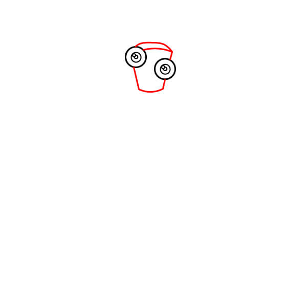 Nakreslete obrys hlavy kolem očí. Tvar by měl připomínat vršek šachové figurky se zakřivenou základnou a šikmými okraji.