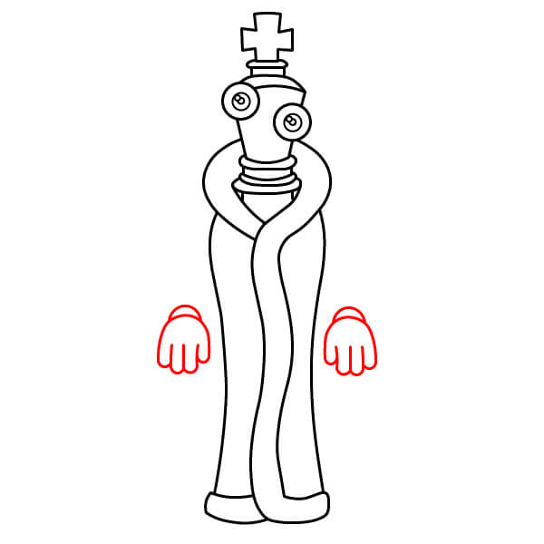 Nakreslete dvě jednoduché ruce v bílých rukavicích, které sahají po obou stranách roucha. Měly by být mírně otevřené, dlaněmi směřujícími ven a zahrnovat manžety.