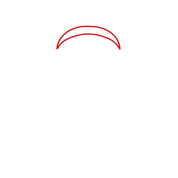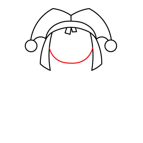 Začněte nakreslením zakřiveného tvaru půlměsíce pro spodní pás klaunské čepice Pomniho.