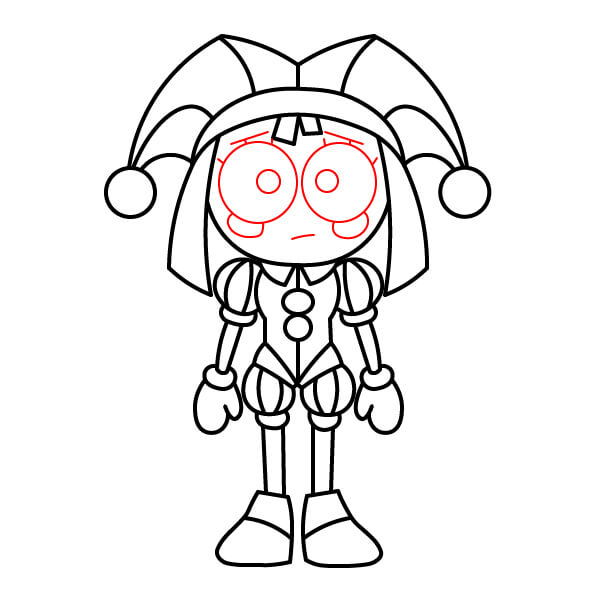 Nakreslete velký trojúhelník (kužel) sahající doprava od prvního oka. Ten tvoří základnu Zoobleovy hlavy.