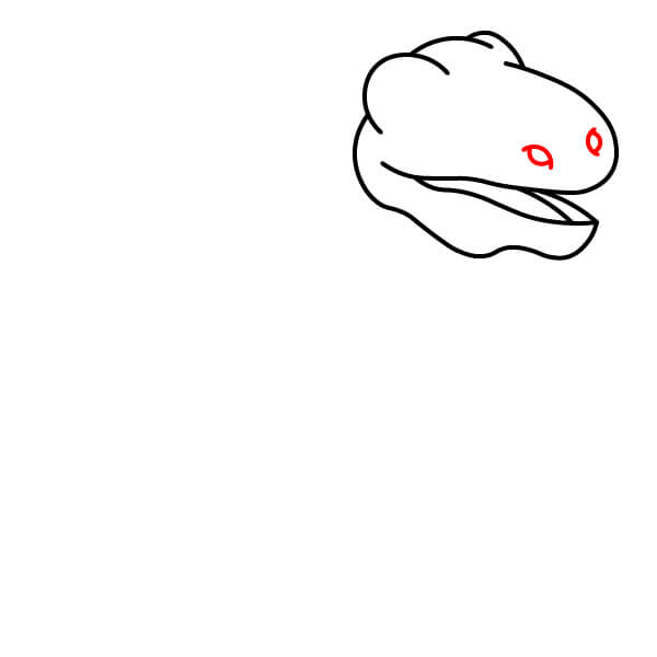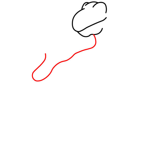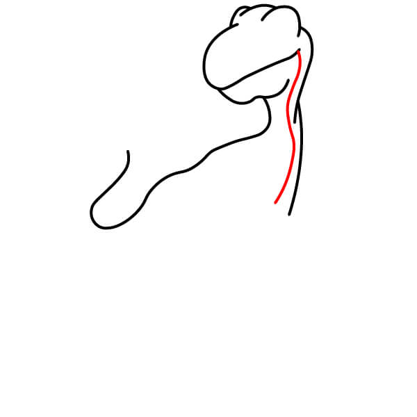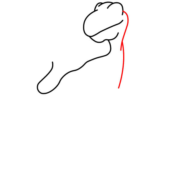 Nyní nakreslete dlouhou, klikatou čáru začínající od horní části hlavy a zakřivující se dolů, která vytvoří záda a ocas.