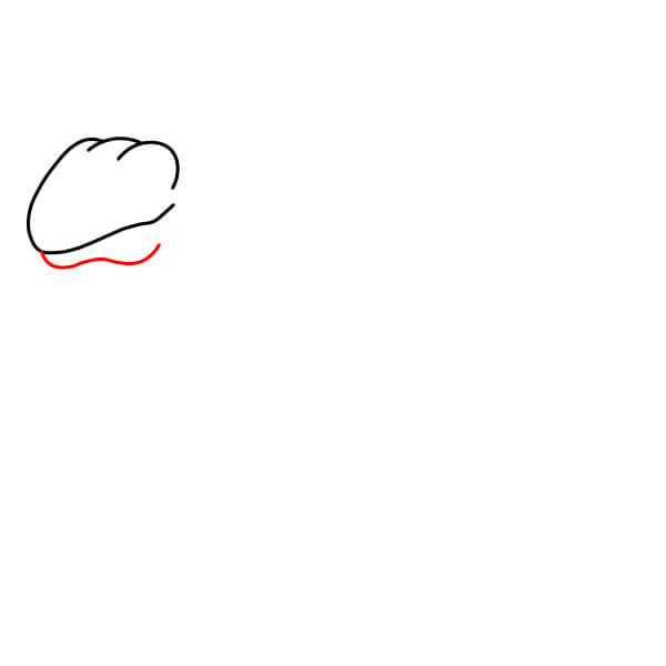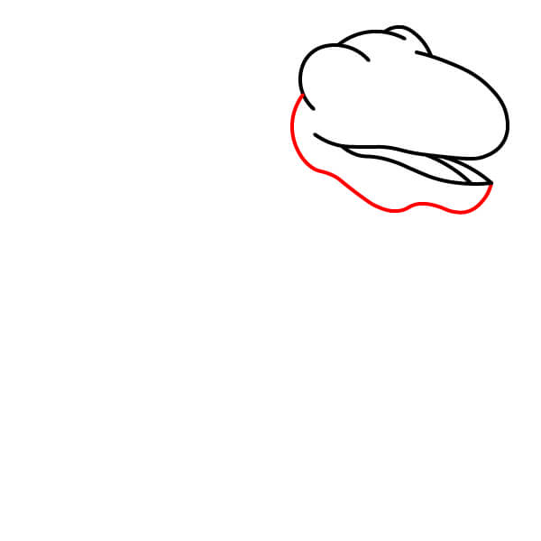Nyní nakreslete další krátkou křivku pod předchozí křivkou, která vytvoří spodní čelist.