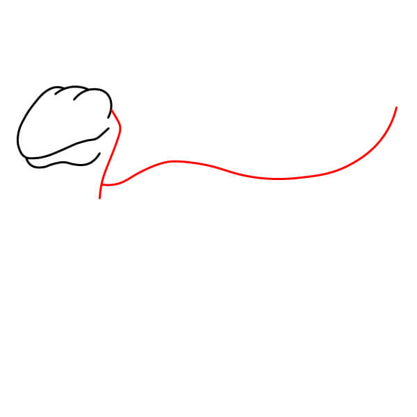 Začněte nakreslením dlouhé křivky, která vytvoří horní část těla, záda a hlavu dinosaura.