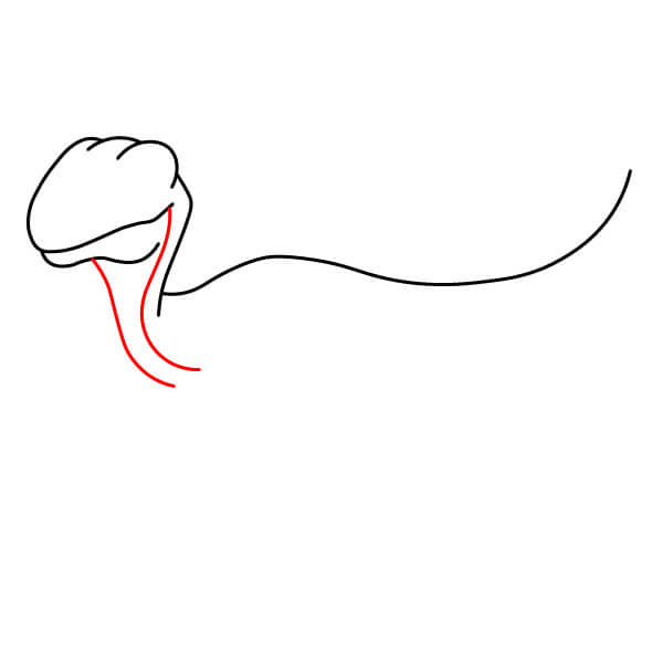 Nyní nakreslete krátkou křivku pod hlavu, která spojí tvar hlavy s krkem a vytvoří spodní část čelisti.