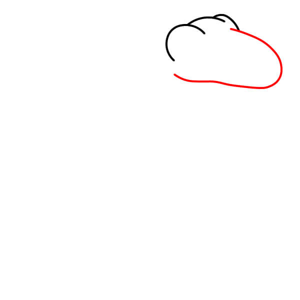 Pod čáry z kroku 1 nakreslete velkou zakřivenou čáru, která dokončí horní část hlavy.