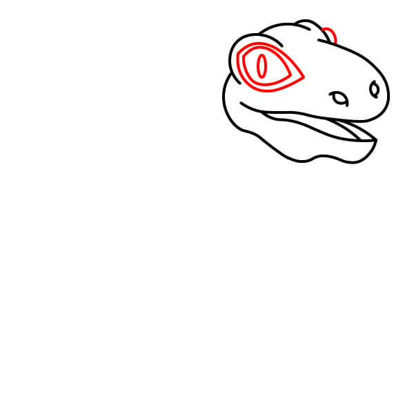 Uvnitř hlavy nakreslete velký, mírně protáhlý ovál, který představuje oko. Poté do něj nakreslete menší, svislý ovál, který představuje zornici.